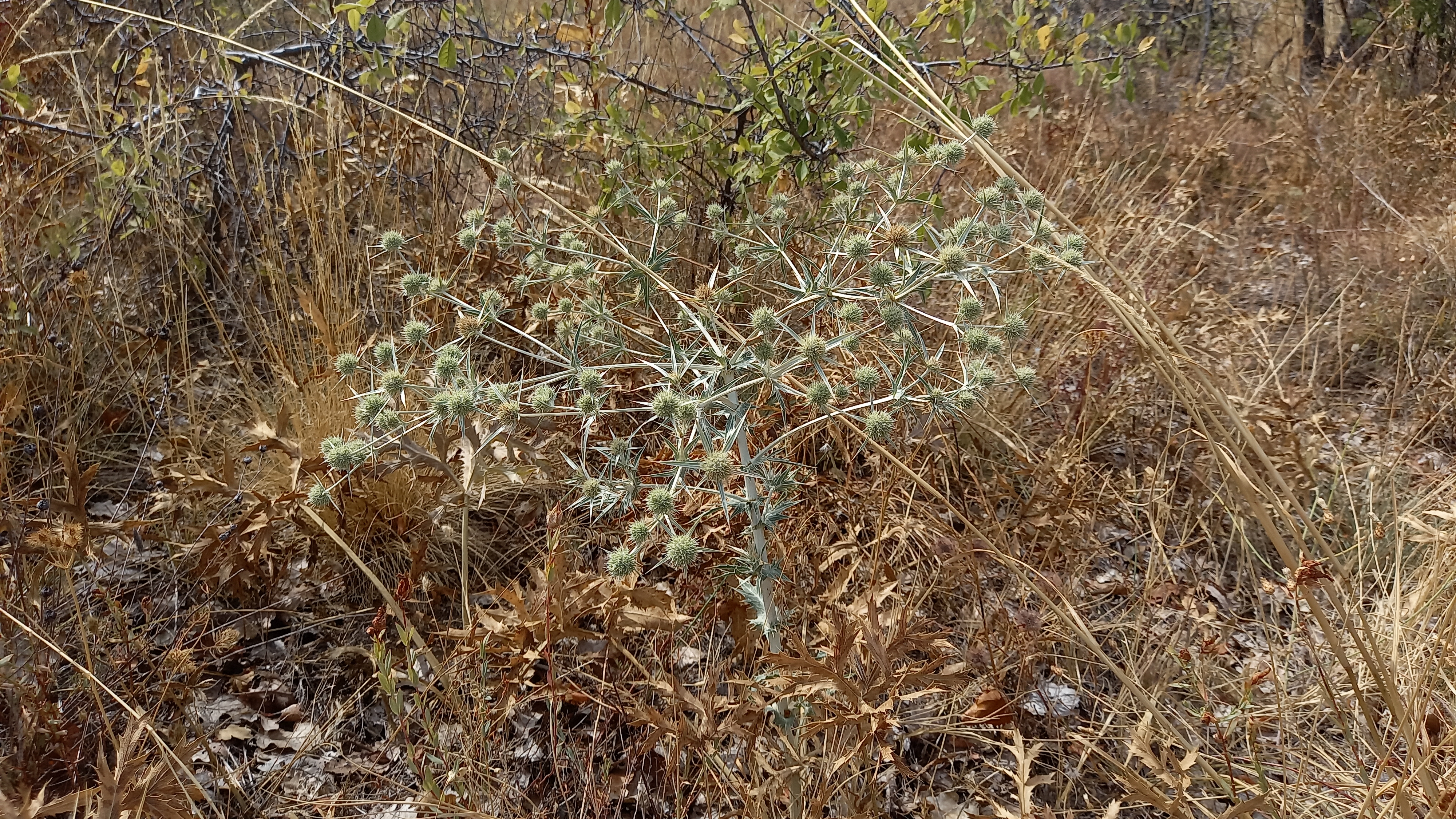 Eryngium campestre– habit. Osogovo, mountain ridge between lake “Gradche” and “Orizarska” River, 19.09.2021. Photo by Trajche Dimitrovski.Eryngium campestre– capitulum. Osogovo, mountain ridge between lake “Gradche” and “Orizarska” River, 19.09.2021. Photo by Trajche Dimitrovski.Eryngium campestre– capitulum. Osogovo, mountain ridge between lake “Gradche” and “Orizarska” River, 19.09.2021. Photo by Trajche Dimitrovski.Eryngium campestre– upper cauline leaves. Osogovo, mountain ridge between lake “Gradche” and “Orizarska” River, 19.09.2021. Photo by Trajche Dimitrovski.Eryngium campestre– stem with upper cauline leaves. Osogovo, mountain ridge between lake “Gradche” and “Orizarska” River, 19.09.2021. Photo by Trajche Dimitrovski.Eryngium campestre– basal leaves. Osogovo, mountain ridge between lake “Gradche” and “Orizarska” River, 19.09.2021. Photo by Trajche Dimitrovski.
