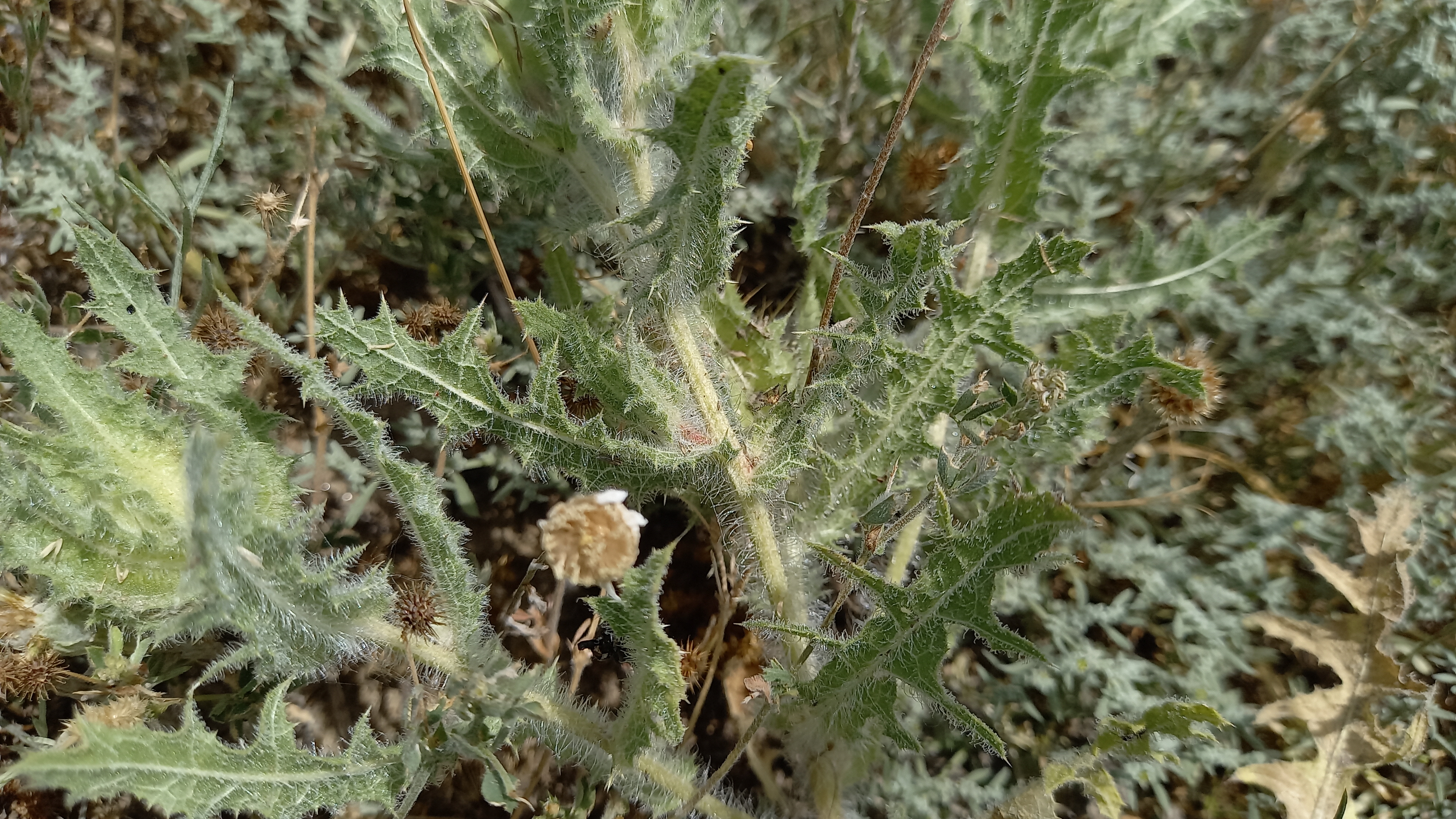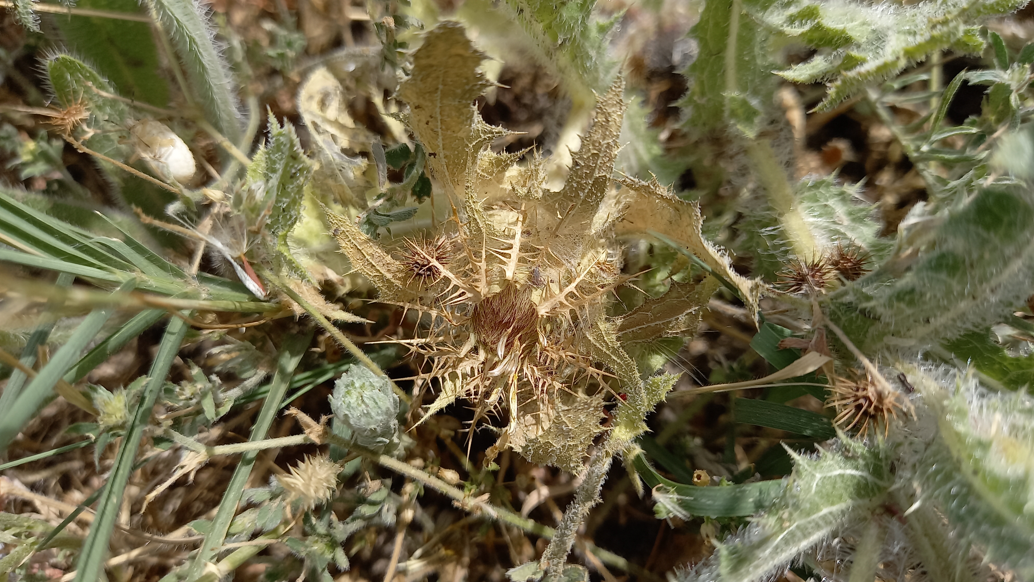Centaurea benedicta – habit. Osogovo, ridge between the gorges of “Kochanska” River and “Orizarska” River, 04.06.2022. Photo by Trajche Dimitrovski.Centaurea benedicta – habit. Osogovo, ridge between the gorges of “Kochanska” River and “Orizarska” River, 04.06.2022. Photo by Trajche Dimitrovski.Centaurea benedicta – habit. Osogovo, ridge between the gorges of “Kochanska” River and “Orizarska” River, 04.06.2022. Photo by Trajche Dimitrovski.Centaurea benedicta – flowering stem with capitulum. Osogovo, ridge between the Kochanska and Orizarska River, 04.06.2022. Photo by Trajche Dimitrovski.Centaurea benedicta – capitulum. Osogovo, ridge between the Kochanska and Orizarska River, 04.06.2022. Photo by Trajche Dimitrovski.Centaurea benedicta – capitulum – florets and inner involucral bracts. Osogovo, ridge between the Kochanska and Orizarska River, 04.06.2022. Photo by Trajche Dimitrovski.Centaurea benedicta – capitulum. Osogovo, ridge between the Kochanska and Orizarska River, 04.06.2022. Photo by Trajche Dimitrovski.Centaurea benedicta – involucre of capitulum. Osogovo, ridge between the Kochanska and Orizarska River, 04.06.2022. Photo by Trajche Dimitrovski.Centaurea benedicta – spent capitulum. Osogovo, ridge between the Kochanska and Orizarska River, 04.06.2022. Photo by Trajche Dimitrovski.Centaurea benedicta – spent capitulum. Osogovo, ridge between the Kochanska and Orizarska River, 04.06.2022. Photo by Trajche Dimitrovski.Centaurea benedicta – stem with leaves. Osogovo, ridge between the Kochanska and Orizarska River, 04.06.2022. Photo by Trajche Dimitrovski.Centaurea benedicta – stem with leaves. Osogovo, ridge between the Kochanska and Orizarska River, 04.06.2022. Photo by Trajche Dimitrovski.Centaurea benedicta – stem with leaves. Osogovo, ridge between the Kochanska and Orizarska River, 04.06.2022. Photo by Trajche Dimitrovski.Centaurea benedicta – abaxial side of leaf. Osogovo, ridge between the Kochanska and Orizarska River, 04.06.2022. Photo by Trajche Dimitrovski.Centaurea benedicta – abaxial side of leaf. Osogovo, ridge between the Kochanska and Orizarska River, 04.06.2022. Photo by Trajche Dimitrovski.Centaurea benedicta – achenes. Scale in mm. Specimen from Osogovo, ridge between the Kochanska and Orizarska River, 04.06.2022. Photo by Trajche Dimitrovski.Centaurea benedicta – achenes. Scale in mm. Specimen from Osogovo, ridge between the Kochanska and Orizarska River, 04.06.2022. Photo by Trajche Dimitrovski.