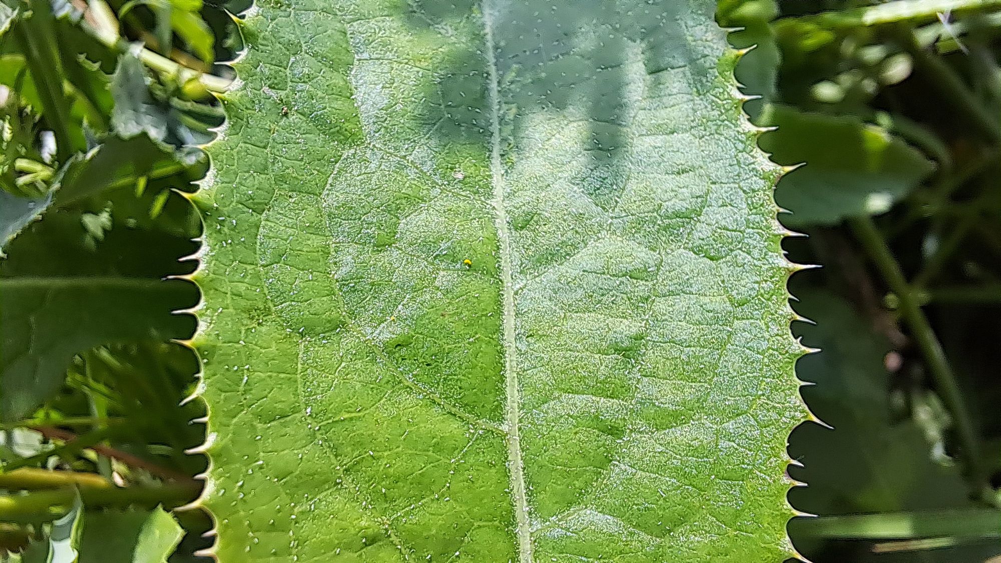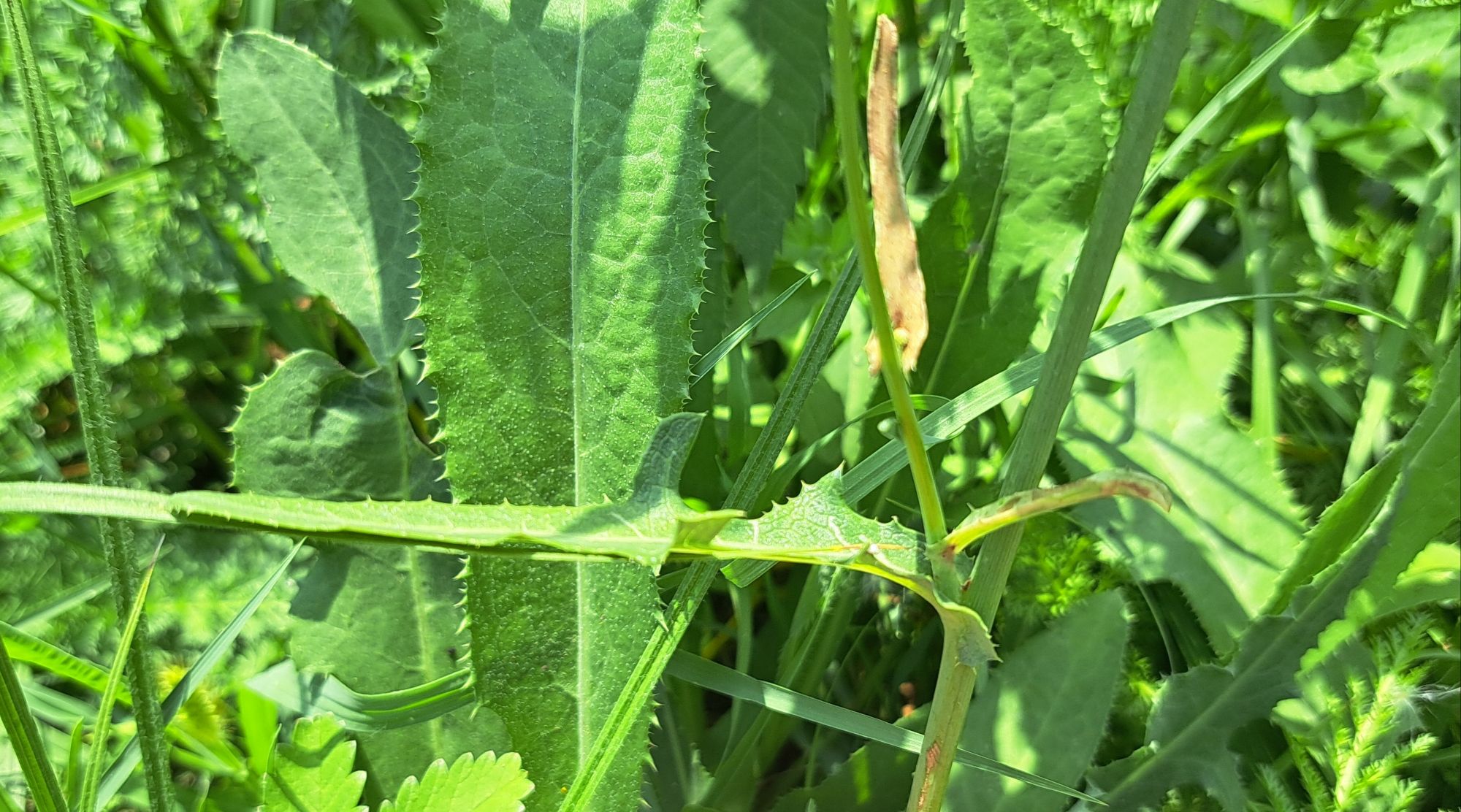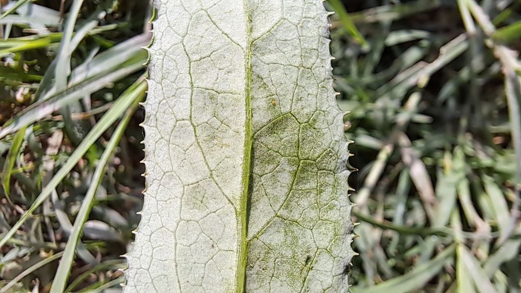 Sonchus arvensis subsp. arvensis – adaxial side of cauline leaf. Kochani – “Kochanska” River, 06.09.2024. Photo by Trajche Dimitrovski.