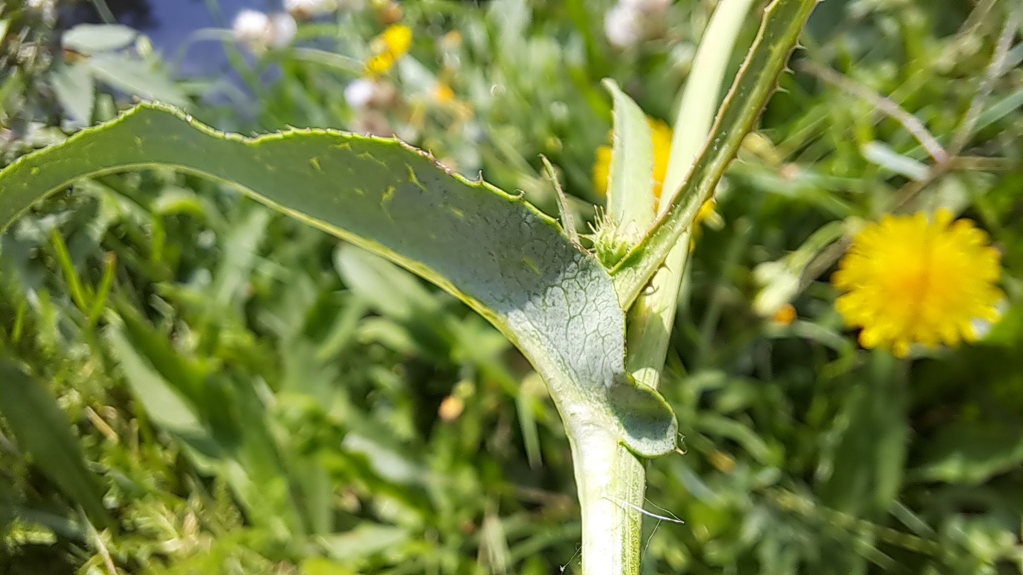 Sonchus arvensis subsp. arvensis – auricles of cauline leaf. Kochani – “Kochanska” River, 06.09.2024. Photo by Trajche Dimitrovski.